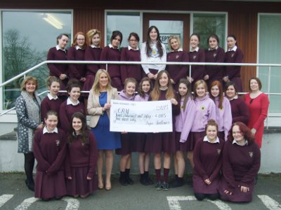 Orla Durkan from Cardiac Risk in the Young (CRY) receives a cheque from students of Loreto St Michael’s secondary school in Navan who fundraised for the cause recently, inspired by the memory of Ruth Maguire, a popular and charismatic second year student of the school who was a victim of Sudden Adult Death Syndrome in November 2011. The idea of fundraising for the charity was the brainchild of fifth year pupil Leah Hughes, who decided to create and sell a keyring in Ruth’s memory.