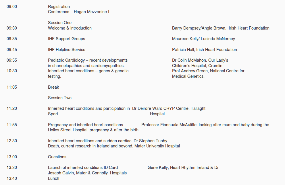 SADS and Inherited Heart Conditions 14 May 2016 – Croke Park