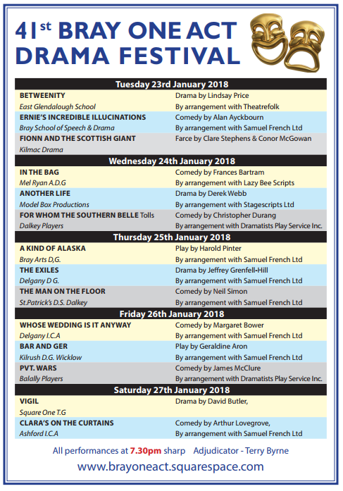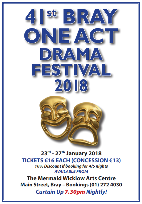 Cry is proud to be one of three charities being supported by the 41st Bray One Act Drama Festival 2018 running from 23rd-27th January in the Mermaid Wicklow Arts Centre.