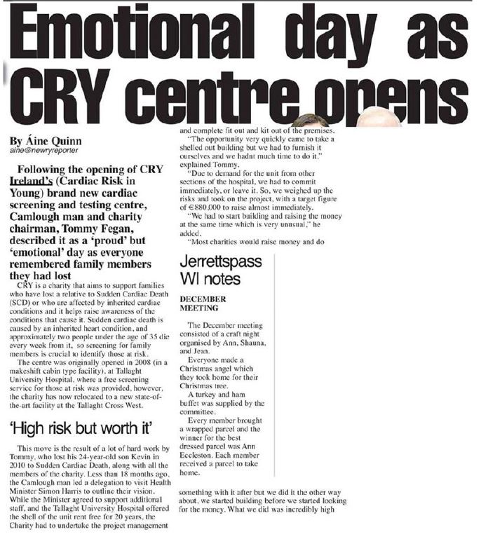 • The CRY Centre, Unit B14, Tallaght Cross West, Dublin 24, D24 R3HC
