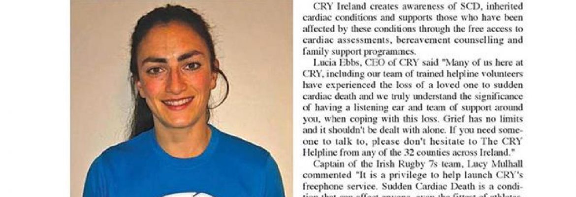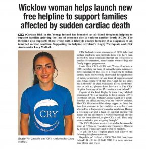 The Wicklow Times (21/12/21) covered our Ambassador Lucy Mulhall supporting the launch of CRY’s #Freephone Helpline. You can view the article below: