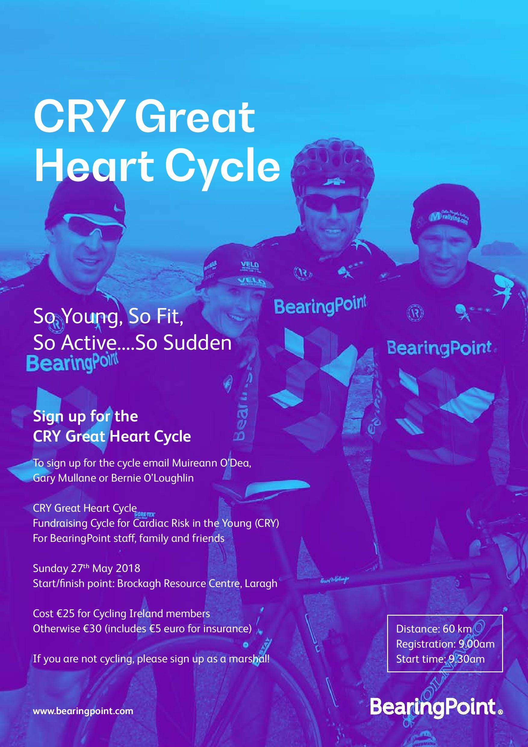 The CRY Great Heart Cycle is on Sunday 27th May 2018