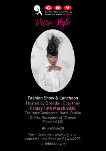 #PureStyle20 is happening on Friday 13th March 2020 in the InterContinental Dublin. Emcee is of course our #Ambassador Brendan Courtney - it wouldn't be the same without him! We're delighted that we have Colin Smyth looking after our Auction - some amazing items being gifted to us. Don't miss out - get your tickets online now at cry.ie