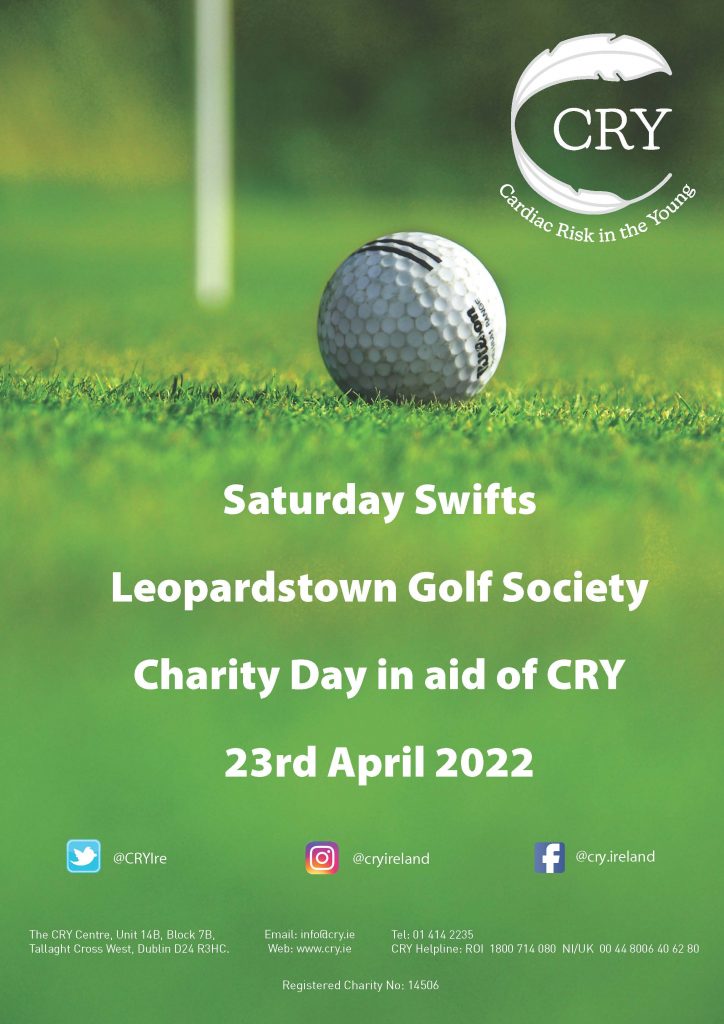 Thank You to the Saturday Swifts Society, Leopardstown Golf Club who have chosen to support CRY Ireland at their Charity Day taking place on Saturday 23rd April 2022. Enjoy the day & we hope you all have a great round!