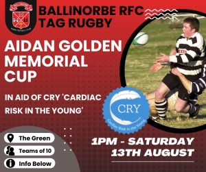 Saturday 13th August Ballinrobe Rugby Club will host a fundraising day in memory of their late team member Aidan Golden. The Aidan Golden Memorial cup – a tag competition will start at 1pm in The Green, Ballinrobe. Teams of 10 are invited to join them on the day for a fun filled event