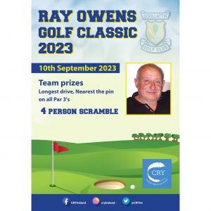 The Ray Owens Golf Classic takes place on 10th September 2023 in Coollattin Golf Club, Wicklow. Heartfelt thanks to the Owens family for choosing to support CRY Ireland while always Remembering Ray. #RememberingRay #Fundraiser #FriendsOfCRY #GolfClassic