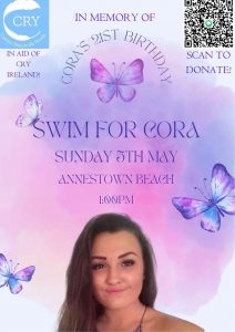 Just over 2 weeks to go until Swim for Cora 2024! The Griffin Family and Coraβs friends have their πΊπππ πππ πͺπππ Β at 1pm on Sunday 5th May on Annestown Beach, Waterford. Link to iDonate now open, click to donate to CRY Ireland (Cardiac Risk in the Young). We canβt wait to see ye
